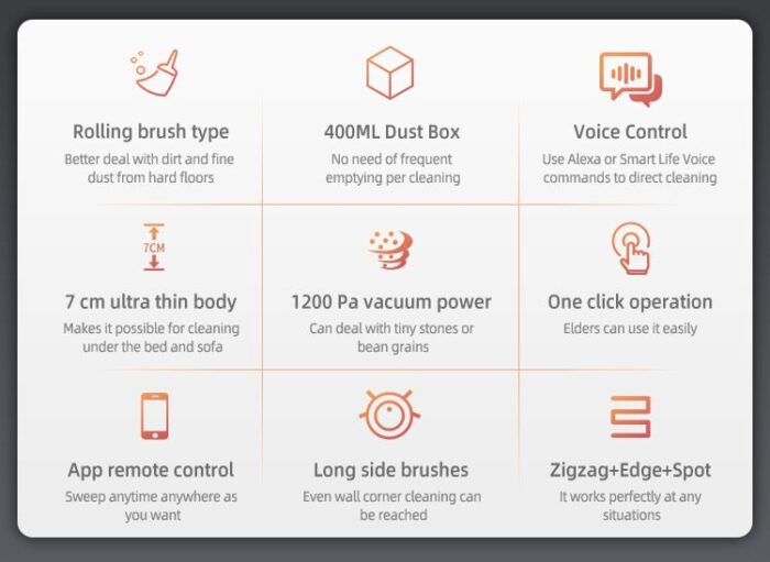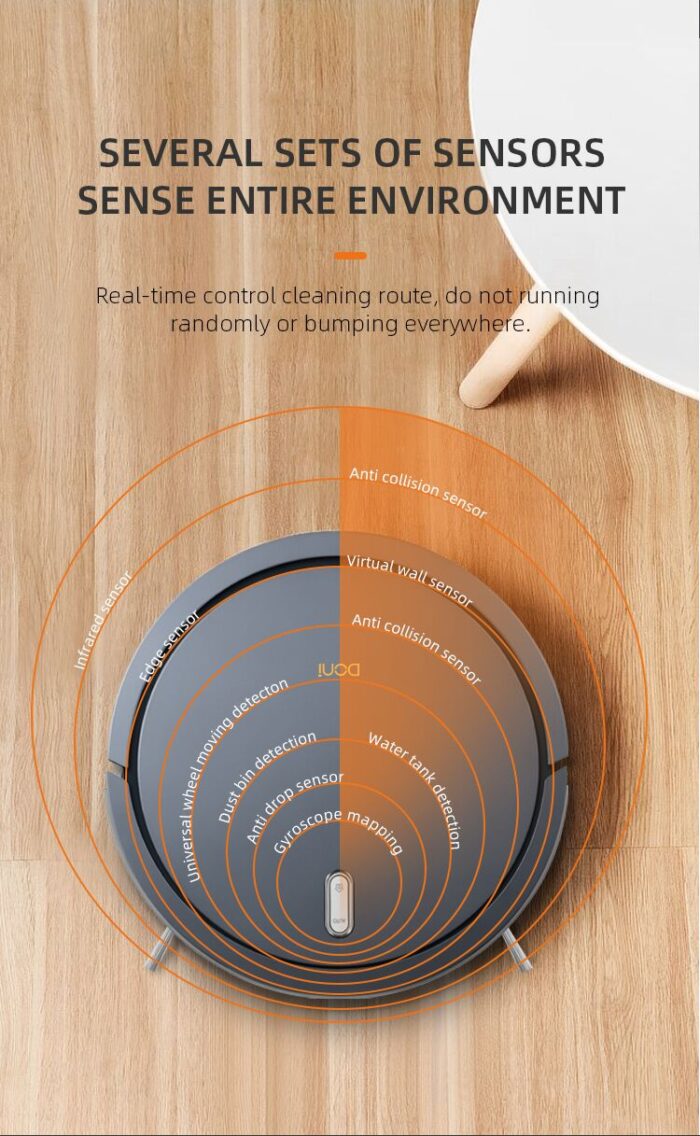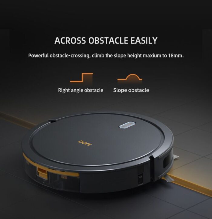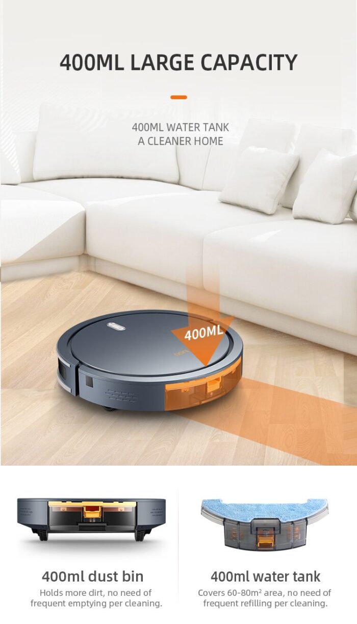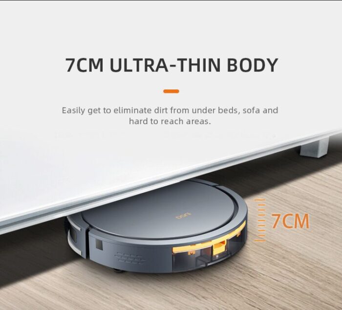 La aspiradora cuenta con conectividad Wi-Fi, permitiendo el control remoto a través de aplicaciones móviles. Con sensores de obstáculos y anticaídas, navega con seguridad, evitando accidentes y garantizando una cobertura eficaz de hasta 100 m2. Su diseño compacto de 7 cm de altura facilita el acceso a áreas difíciles, haciéndola una elección práctica para cualquier hogar.