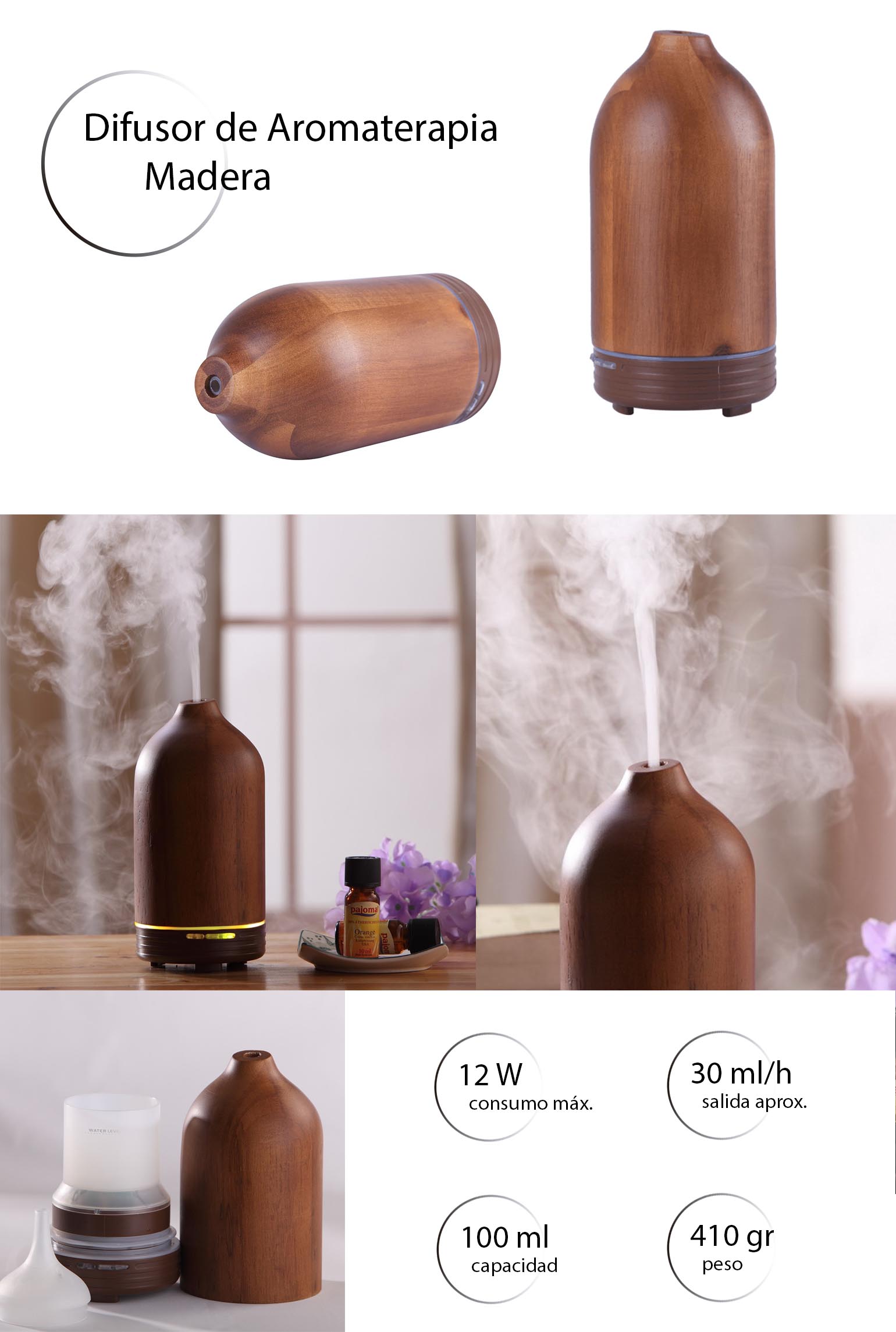 Este difusor ultrasónico, ayuda a purificar y mejorar la calidad del aire con su función de humidificador. También, mediante la aromaterapia, puede ayudar a aliviar tensiones y reducir enfermedades. Con el concepto de salud y su moderno estilo es la opción perfecta para perfumar y decorar cualquier rincón de tu hogar.