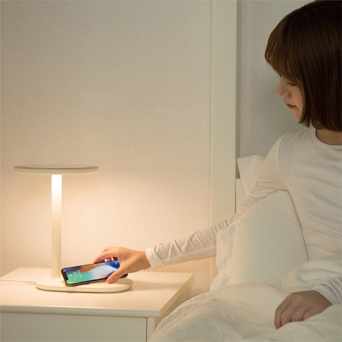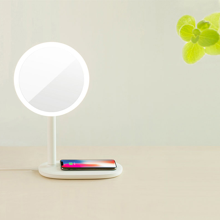 Diseño simple y femenino que combina creativamente las funciones de Espejo LED, Lámpara de Escritorio y Cargador Inalámbrico con soporte QI Estándar de carga más rápida. Podrás maquillarte y Cargar tu Smartphone al mismo tiempo, o cargarlo y leer un libro.