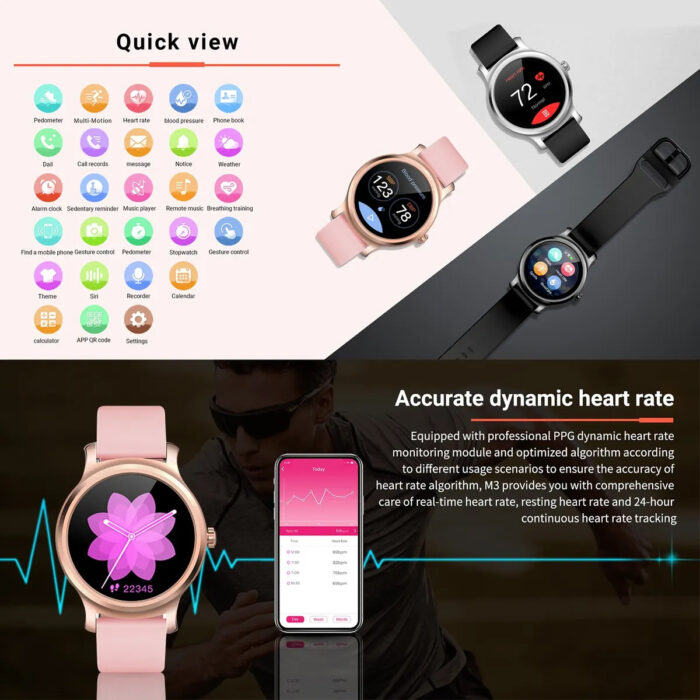 Diseño deportivo y esfera de metal, este Smart Watch no solo será el accesorio más elegante, sino que es el complemento ideal para tus actividades del día a día. Cuenta con entrenamiento de respiración para aliviar el estrés y relajarse, monitoreo de rimo cardiaco 24/7 y modo multideporte.